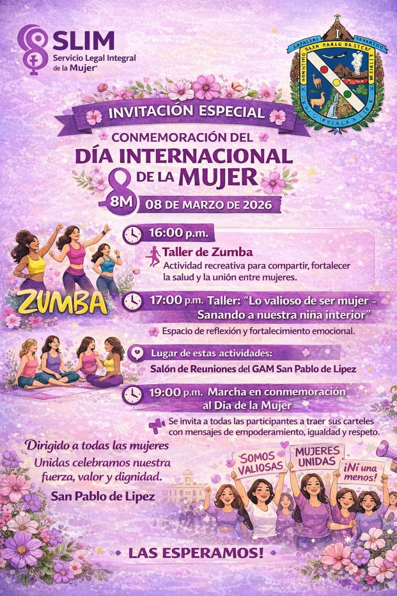 El Servicio Legal Integral de la Mujer – SLIM del Gobierno Autónomo Municipal de San Pablo de Lipez, invita cordialmente a todas las mujeres a participar de una jornada especial de reflexión, bienestar y empoderamiento.